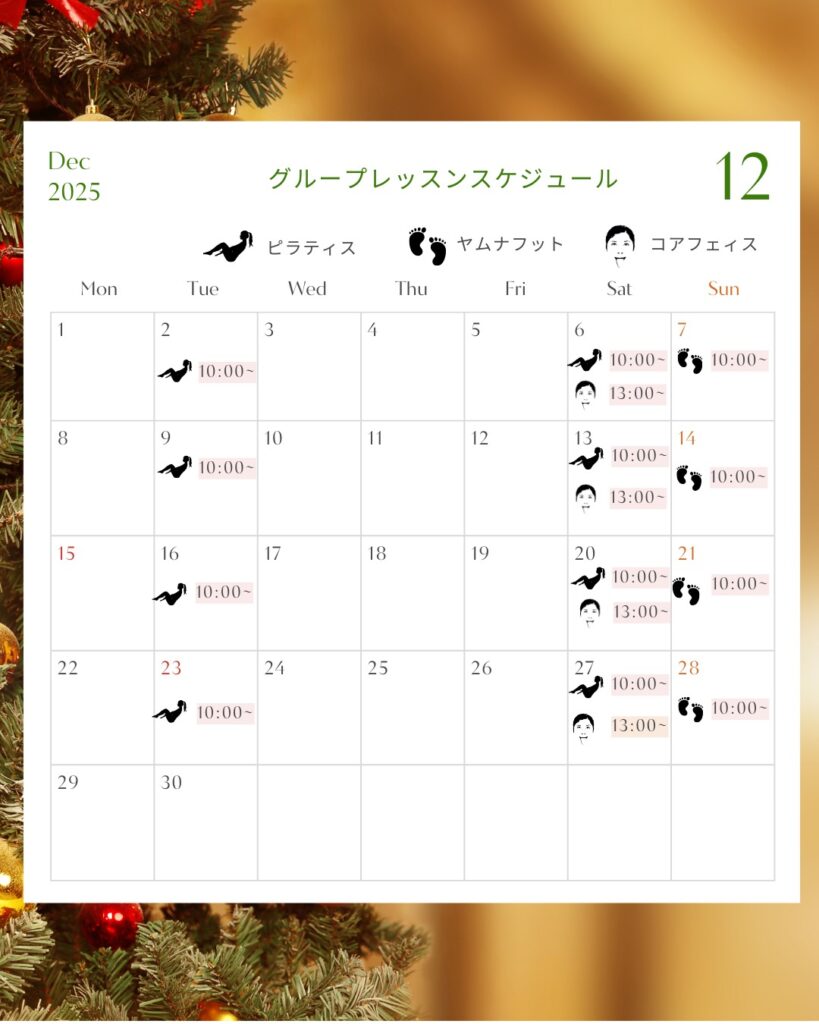 A.プライベートレッスンは主に専用マシンを使用して1対1のオーダーメイドのレッスンを行います。グループレッスンは5名までの少人数制で、マットとスモールプロップス(フォームローラーやサークル等)を使用して行います。ピラティスが初めてで不安な方は、まずはプライベートレッスンでピラティスの呼吸や身体の使い方に慣れていただくと、グループレッスンに参加された際にもより効果を感じていただきやすいです。